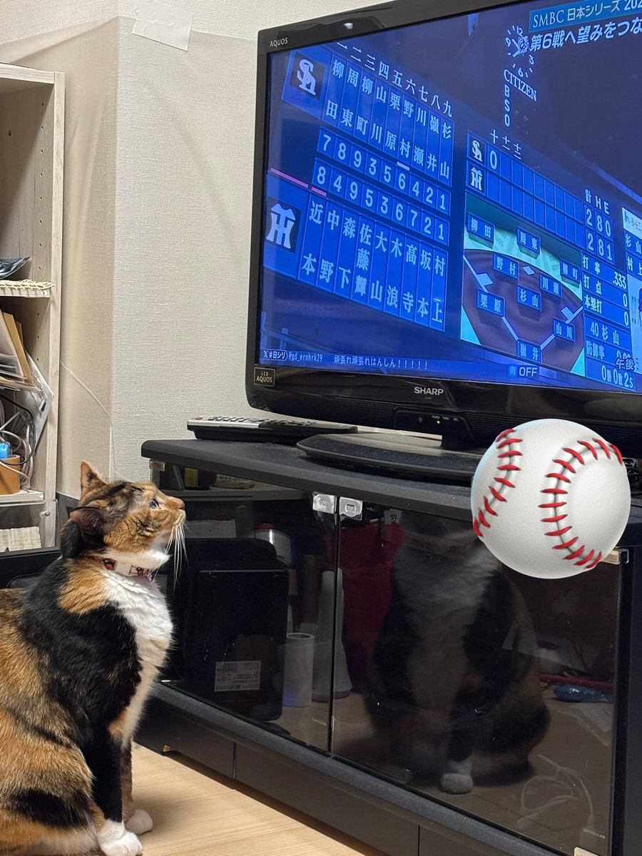 最近、テレビをよく観るようになったあられ📺 どっちが勝つかニャ? #日本シリーズ #猫のいる生活 #三毛猫 #アメショ #ハチワレ #猫 #猫と暮らす幸せ #猫好きさんと繋がりたい #保護猫 #保護猫と暮らす #NPO法人けだまも pic.x.com/JAcnP0416a