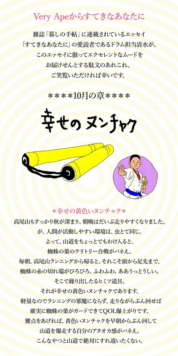 🆙再掲🆙 Very Apeドラム清水里華が月1連載しているエッセイ「Very Apeからすてきなあなたに」第4回(2024年10月掲載) #すてきなあなたに #ヌンチャク #三浦知良 #キングカズ pic.x.com/Q2NkEhy7yH x.com/VeryApe_JP/sta…