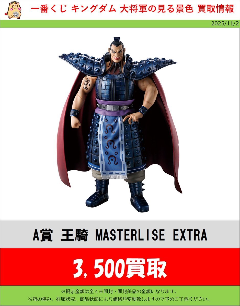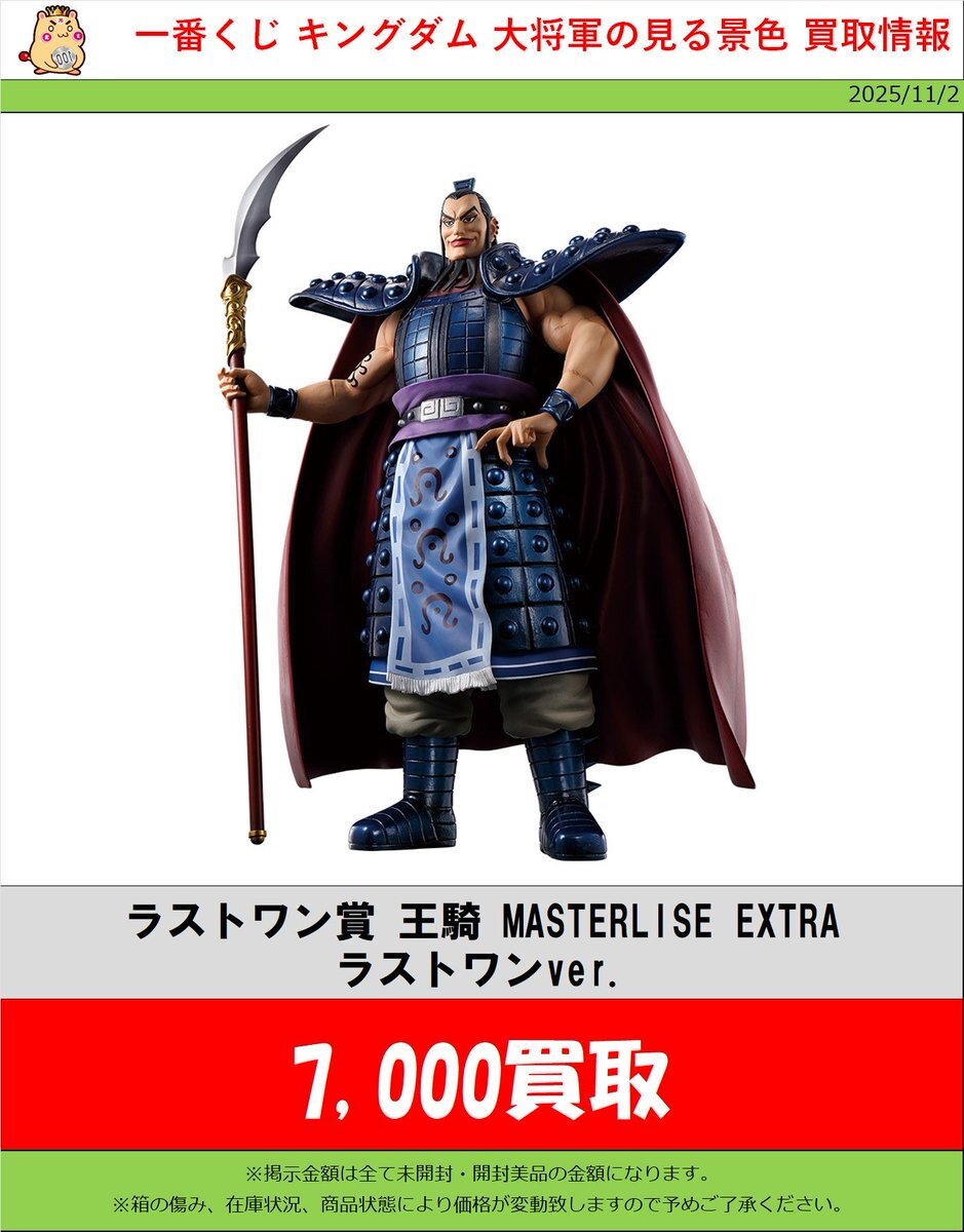 【キングダム #一番くじ 告知】11/7版 ⭐️#キングダム 大将軍の見る景色⭐️ ❤️‍🔥ラストワン賞 #王騎 ⏩ ¥7,000買取 ❤️‍🔥A賞 王騎 ⏩ ¥3,500買取  ❤️‍🔥B賞 # ⏩ ¥4,000買取  ❤️‍🔥C賞 #羌瘣 ⏩ ¥4,000買取  王騎将軍の矛 活躍中〜🐴💪 #三郷 #八潮 #フィギュア #買取 pic.x.com/GsND8XRKuI