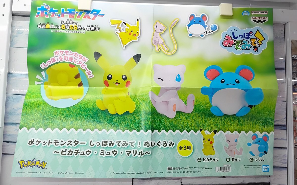 【プライズ】本日新入荷! 『#ポケットモンスター しっぽみてみて!ぬいぐるみ~ピカチュウ・ミュウ・マリル~』全3種! #ポケモン #ピカチュウ #ミュウ #マリル #プライズ #クレーンゲーム #UFOキャッチャー #三郷 pic.x.com/JrKrj76EKB