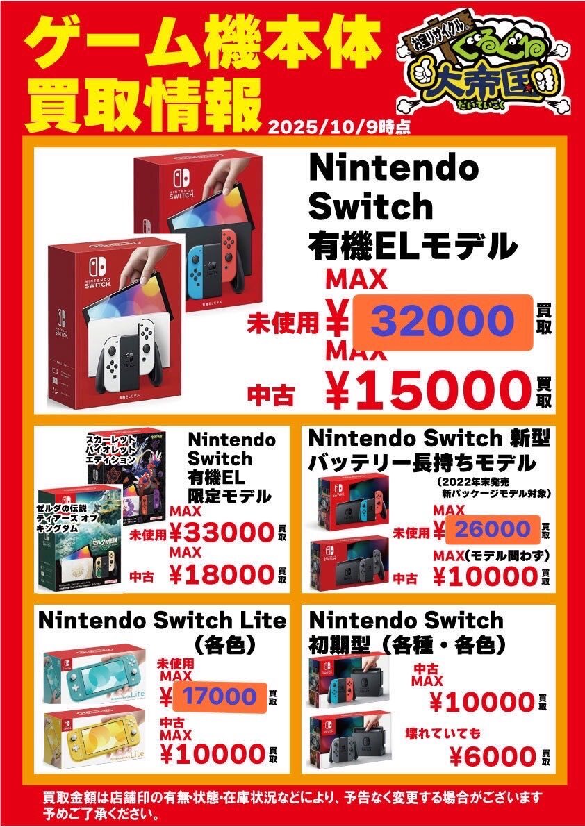 \🎮Nintendo Switch買取強化中📣/ 🔸Switch 有機ELモデル 💰未使用 MAX【¥32,000】‼️ 🔹新型(バッテリー強化版) 💰未使用 MAX【¥26,000】✨ 🔸Switch Lite 💰未使用 MAX【¥17,000】🎊 ❤️‍🔥もちろん中古品も大歓迎🙆‍♀️ お持ち込みお待ちしております💁‍♀️🏪 #ぐるぐる大帝国三郷店 #三郷 #八潮 pic.x.com/prkChlPcGg