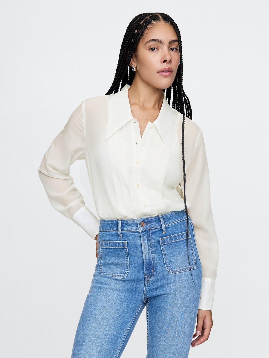 Gapのシアー クラシック タキシードシャツ。透け感のある生地が魅力的な、上品なシャツです。 #gap #Gap #タキシードシャツ #シアー #上品 #着回し click.linksynergy.com/link?id=1Y*xI6… pic.x.com/FtjH8NuKAA