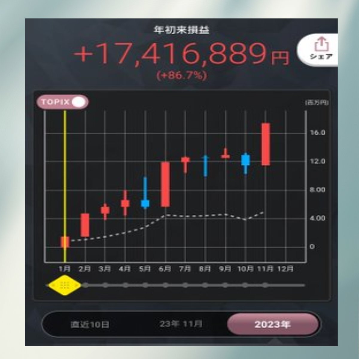 🌯🐆🦺🙄🥱 🦄@xNXpY6OSqvJG80m さんの戦略、 本当にオススメです!私も実践してたった15日で 300万円も稼げました!本当に効率的ですね!❎日本株 🥗ソニーグループ(6758)🎬任天堂(7974)#三井化学 #4183 🕗#株主還元 #大林組 #1802 🀄#上場廃止 pic.x.com/s3DwvhRbpd