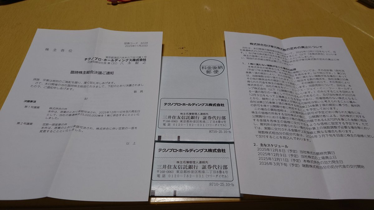 #投資家さんと繋がり #株クラ #公開買付 #上場廃止 テクノプロ・ホールディングスの臨時株主総会決議通知 そりゃそうでしょうね🙄 4870円での買付😐喜ぶべきか🙄 pic.x.com/O1OEOhZ0eY