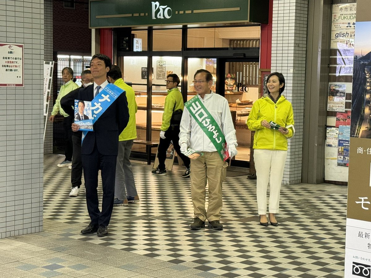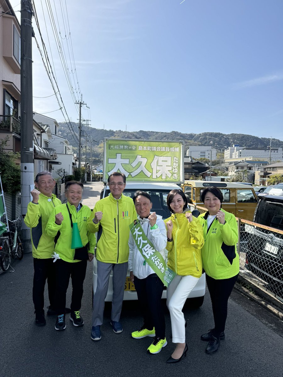 #島本町議選挙🍀#ナカジマ洵智 候補】 43歳のナカジマ候補は2期目のチャレンジ💪🏻現役パパの感性を生かし子育て世代の人口流入を目指し島本の活性化を目指します😊 前回の選挙は「なかじま」でしたが今回は「ナカジマ」✌️ 島本町民の皆さまの清き1票を🙏 #大阪維新の会 #上島一彦 元箕面市長も一緒😆 pic.x.com/J40o8AI9TZ