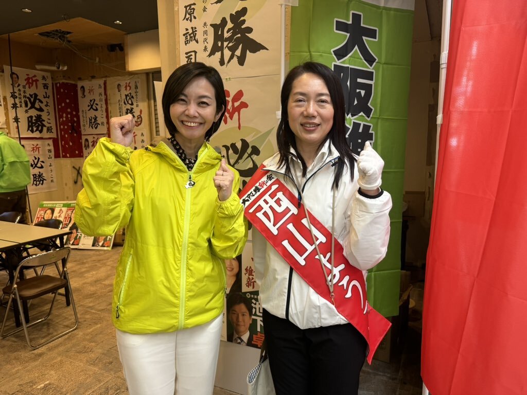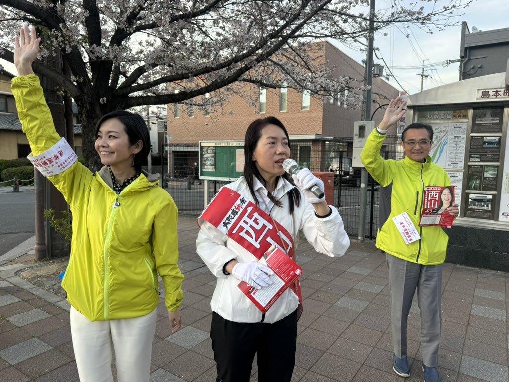 #島本町議選挙🌸#西山ようこ 候補】 百貨店勤務だけあって有権者のお声も丁寧にヒアリングする西山候補は政界初挑戦🔥 PTA会長や教育委員、町の選管委員長なども務め、地域のためにも汗してきました🥰 町民の皆さまの清き1票をお願いします🙏 #大阪維新の会 #上島一彦 元箕面市長も一緒😆 pic.x.com/fyVluB7f2V