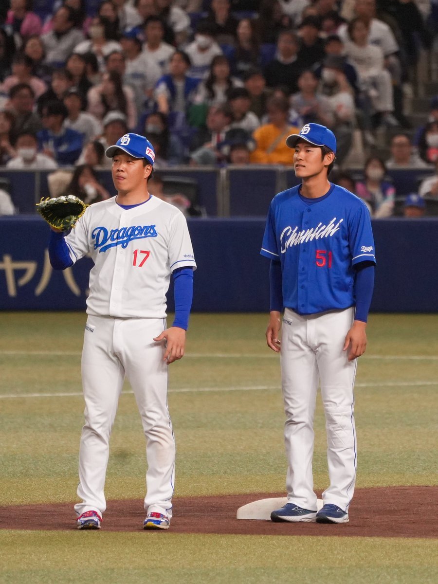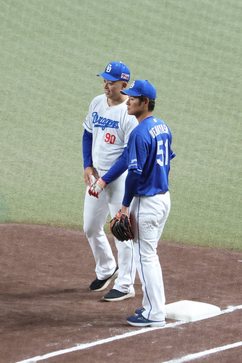 これも必見!! 元鷹の元戦力外選手の2人がドラゴンズのユニを着て並んでプレーしてるの ご縁、選択、運命、どんな言葉がベストなのか分からないけど とにかくすごい事ですよね✨ #上林誠知 #三浦瑞樹 pic.x.com/cIKYt7sKOz