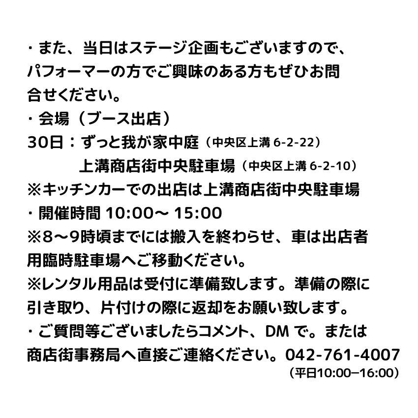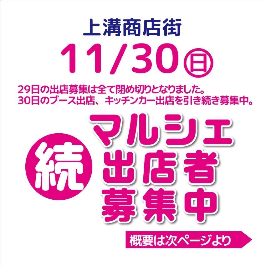 11月30日、上溝で開催するマルシェのブース出店、及びキッチンカー出店者を募集しております。 ご興味のある方、まずはお気軽にコメント、DMください。 ご質問等ございましたら商店街事務局までお問い合わせください。042-761-4007 皆様のご参加をお待ちしております。 #上溝 #上溝商店街 #マルシェ pic.x.com/xJF0LfNbV7