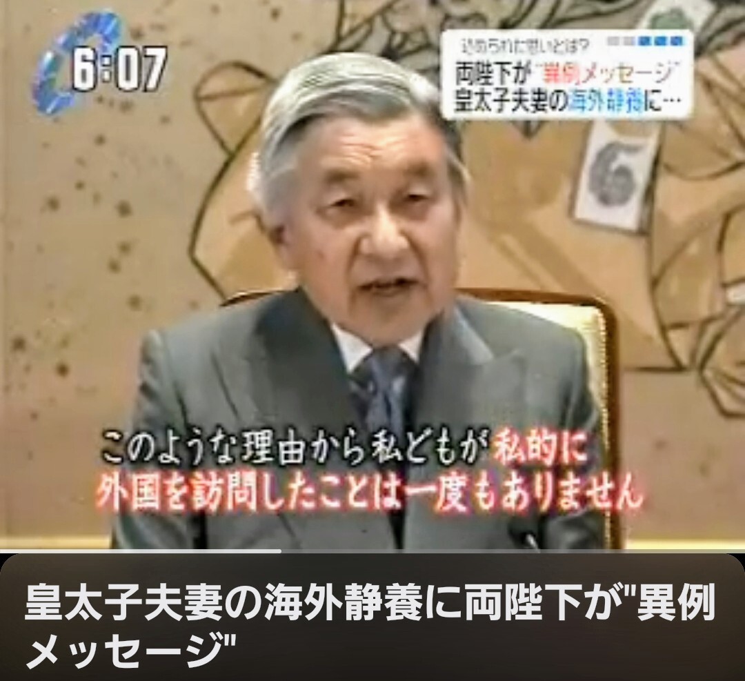 2006年皇太子ご一家(当時)はオランダ女王の招待を受けて約2週間ご静養。この静養は適応障害と診断された雅子さまの療養を目的としていたが… それに対して、平成の天皇は 「私どもが私的に外国を訪問したことはありません」と病人に鞭打つような記者会見をした youtu.be/qCRYGMHDmas?si…