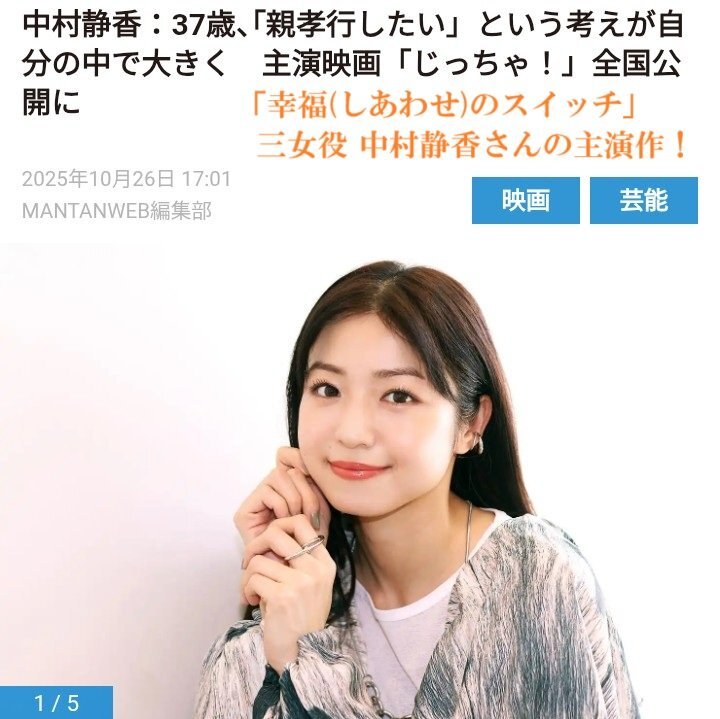 #上野樹里 さん #沢田研二 さんの電器屋映画「 #幸福のスイッチ 」(監督・脚本 U-NEXT配信中)で三女役だった #中村静香 さん。高校生で演技デビューでしたが、今やドラマや映画、バラエティで大活躍。映画「 #じっちゃ! 」主演🎊おめでとうございます💐 📝MANTAN WEB mantan-web.jp/article/202510… pic.x.com/l8F6PUBkEQ