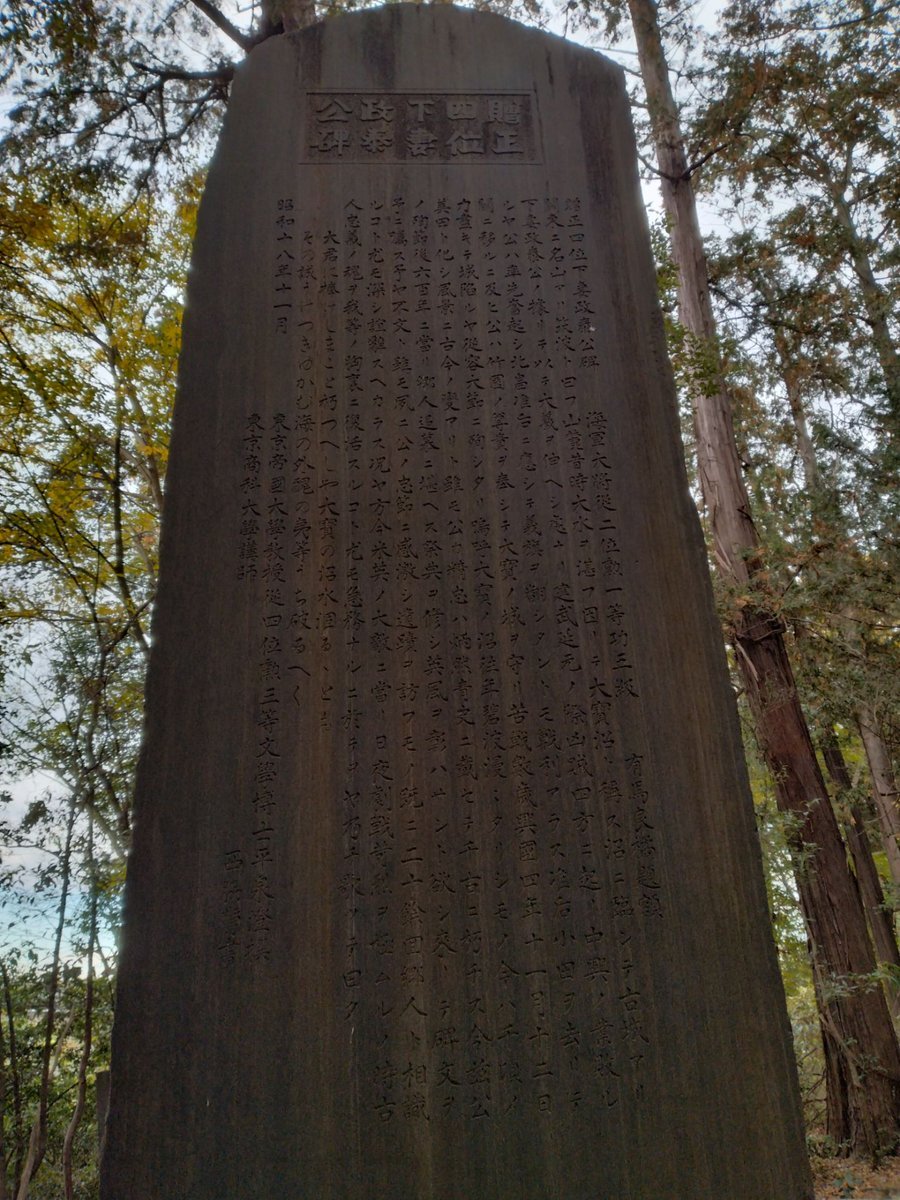 大宝八幡宮のご本殿の奥の方へ進むと下妻政泰公の顕彰碑がありました。お名前を存知あげませんでした。石碑の撰文はなんと!平泉澄博士! さもありなん。公は南朝の忠臣でいらした。題簽は有馬良橘海軍大将。#下妻 pic.x.com/aY7p4xLh6l