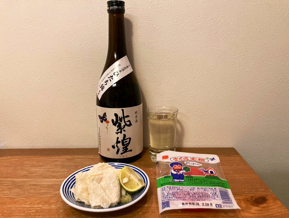 紫煌 純米 ゆば刺、さくら大根など 香り飲み口は酸強め、けっこう色付き ひたち錦の個性を感じる酸辛苦旨カラメル ぬる燗もいいかも、ブドウ、余韻の香ばしさも美味しいお酒 #来福酒造 #茨城の酒 #下妻 pic.x.com/sfYSSIcxmO