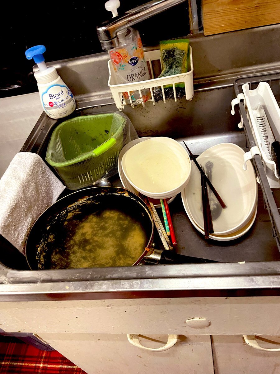実はハウスエンドウには罰則があります。 今回は、チャンポンが夏休み中溜め込んだ食器の洗い物の数々数々💦 そこで歴代の先輩達が文化祭で使用した有り難い小道具達の中から素敵なウエディングドレスを着用してもらい今後の反省に繋げました。 そして昨夜の洗い物✨ #下宿 pic.x.com/hDZBqHkPvC
