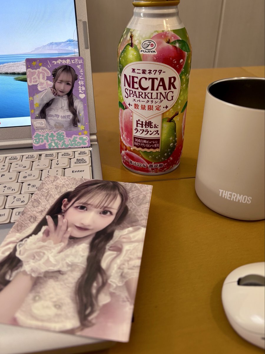 #きょうのももちゃーじ 🍑 今日もテレワーク🧑🏻‍💻不二家ネクタースパークリング(数量限定)白桃&ラ・フランス🍑🍐でチャージして午後もがんばる✊🏻 #不二家ネクター ももちゃん髪色がちょうどよいね😊 #愛乃もも @aino_momo_ #りりちゅん #Lilitetune @Lilitetune pic.x.com/nATMJyfLmo