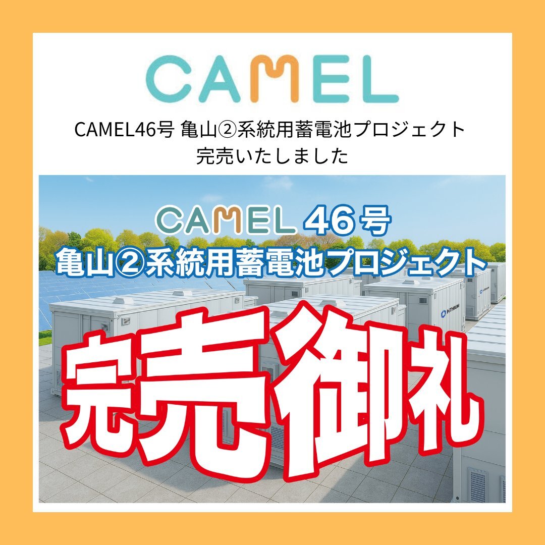 📢 完売御礼! 「CAMEL46号 亀山②系統用蓄電池プロジェクト」⚡️ 満枠で完売いたしました! ご投資いただいた皆さま、誠にありがとうございます。 今後ともCAMELをよろしくお願いいたします🐫✨ #CAMEL #不動産クラウドファンディング #完売御礼 #資産運用 #蓄電池ファンド #再エネ投資 #きゃめるん pic.x.com/jIWXDfEiXI