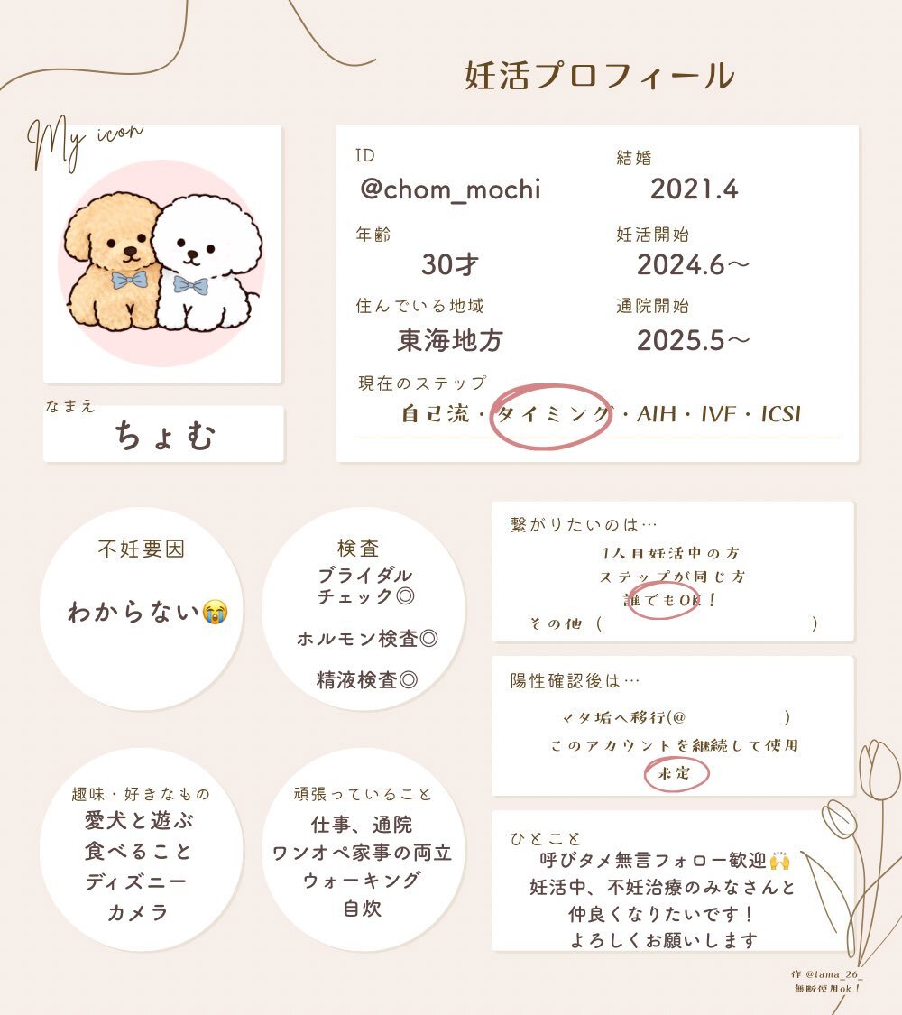 来月からAIHにステップアップということで、プロフィール更新しました📝 妊活中の方と繋がりたいです! 絶対🧚見るぞー!!❤️🔥 #妊活プロフィール #妊活垢さんと繋がりたい #妊活してる人と繋がりたい #不妊治療 pic.x.com/H3PuMfX7b5