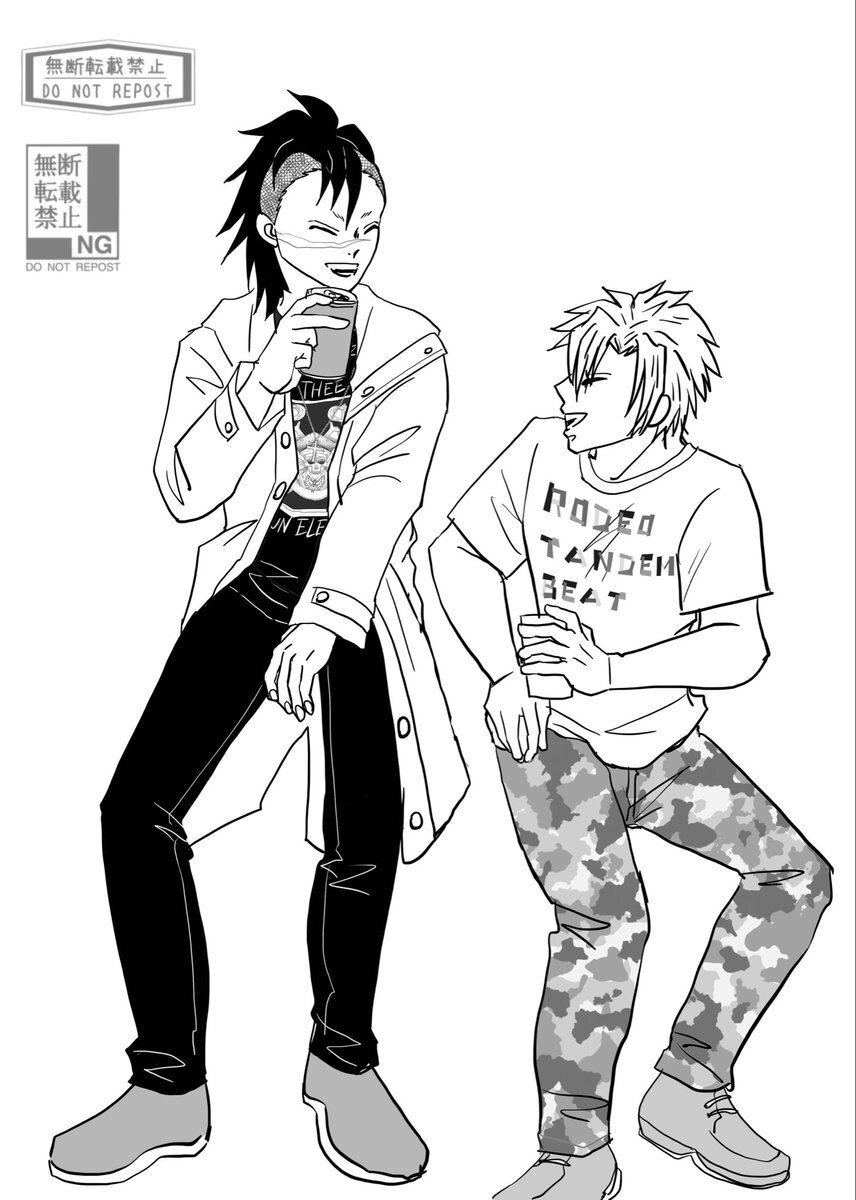 #不死川玄弥 #鬼滅の刃ファンアート 玄弥は細身のロッカースタイルが似合う。なのでチバユウスケの服を着せる。本当はタバコ🚬を持っているが玄弥は高校生なのでロリポップに取り替えました。 pic.x.com/RhrMHXsgQb