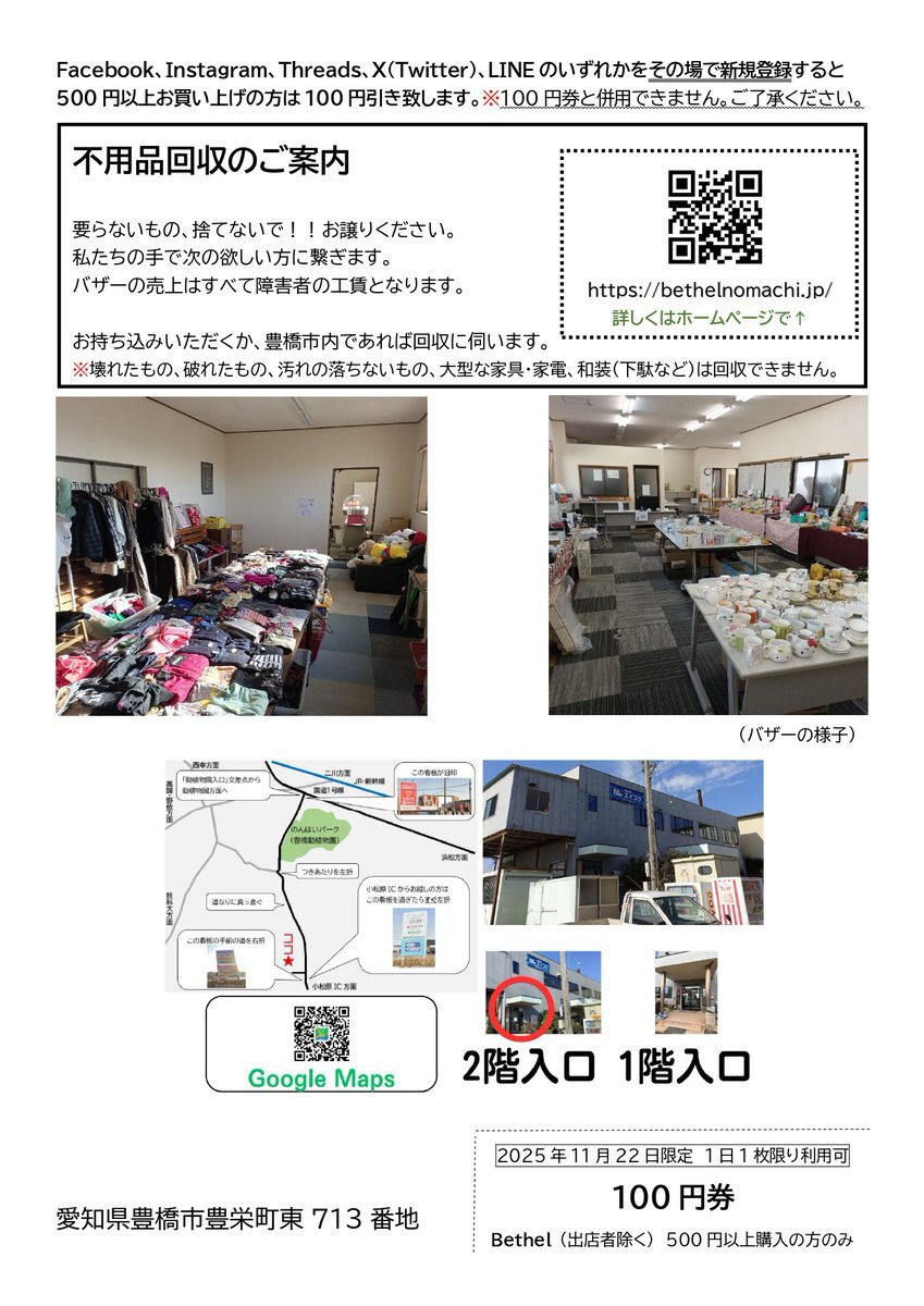 2025/11 最近は寒くなってきましたが皆様いかがお過ごしでしょうか。 今月のバザーのお知らせです😊 当日は是非マイバッグご持参のうえ、皆様のお越しをお待ちしております👜 #豊橋 #豊橋市 #バザー #リユース #リサイクル #野菜 #パン #SDGs #11月 #不要品 #不用品 #不用品回収 #バザール #マルシェ pic.x.com/lzwBLBXdtB