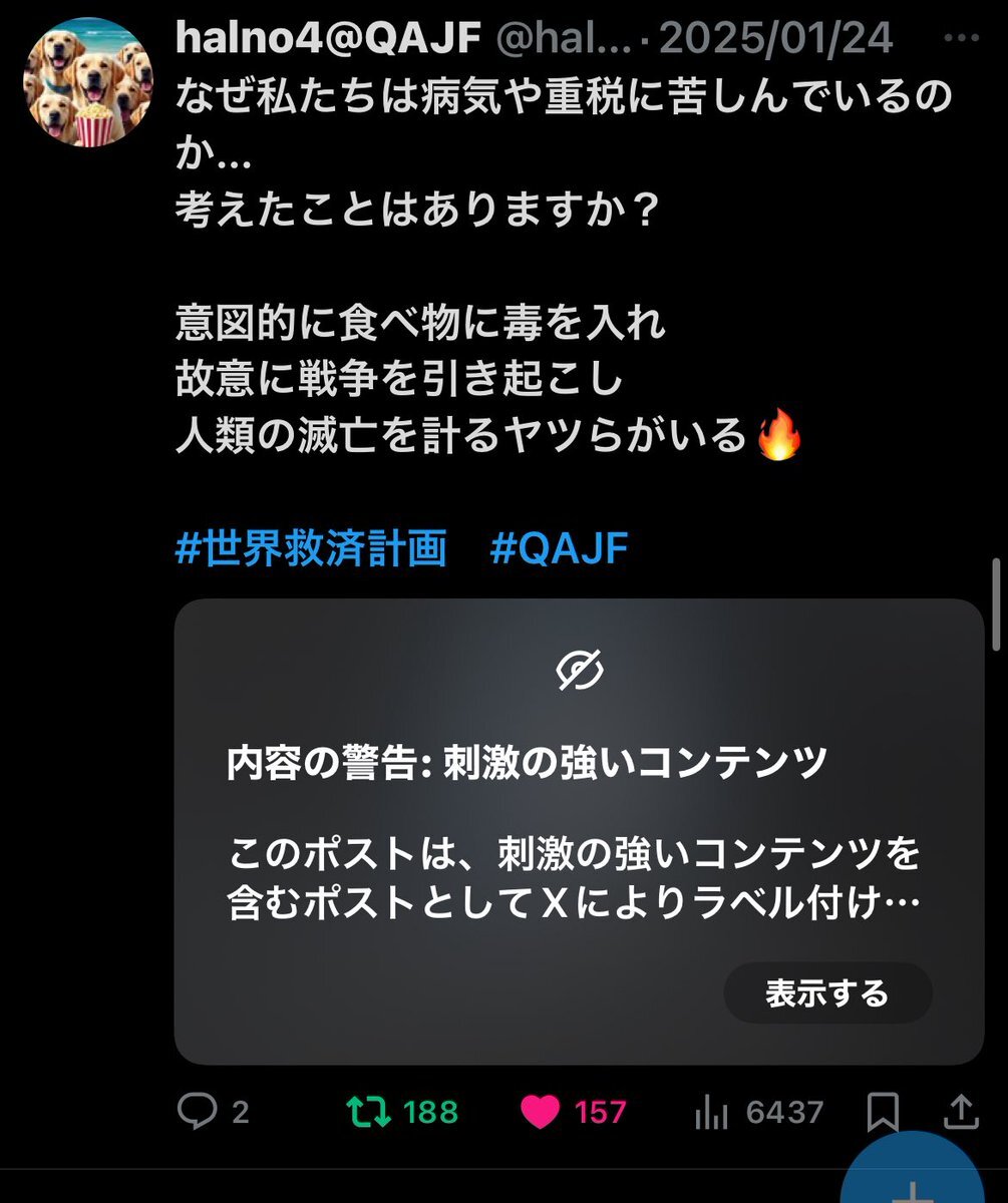 ググっているだけではまず永久に QAJFにたどり着くことはありません😢 自分の場合、元QAJF隊員の工作員を 経由してTelegramのQAJF関連情報に アクセスした時点から 本当のスタートが始まりました…🙏 #世界救済計画 x.com/iambackhuh5/st…