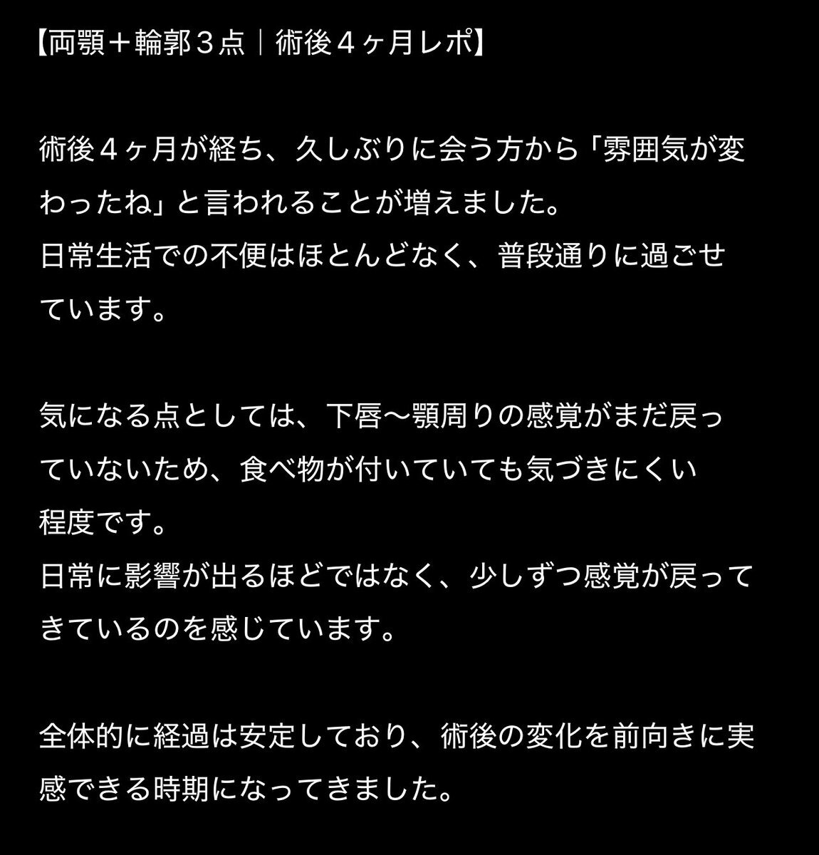 DT4ヶ月目 腫れや麻痺はなく、もう全然普通に生活していて、歯を出した笑顔も自然過ぎて誰にも手術のことは気づかれません🙂↕️ ナチュラルな変化を希望していたのでとても満足です✨ #マックス口腔顎顔面外科 #両顎手術 #輪郭2点 #マックス口腔外科 @MACSJPPS pic.x.com/tQqv5xlNaG