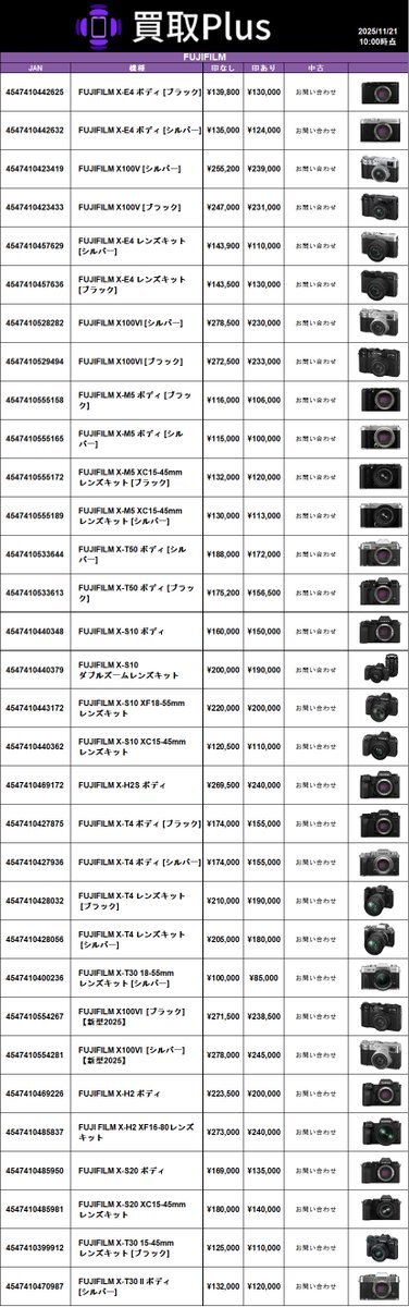 #大阪日本橋 #買取 #高価買取 #新店 #買取Plus #強化買取 #カメラ #中古カメラ #FUJIFILM 現金あり 中古カメラ高価買取中👍 印あり、箱傷あり、強化買取中 pic.x.com/iFK583iKT6