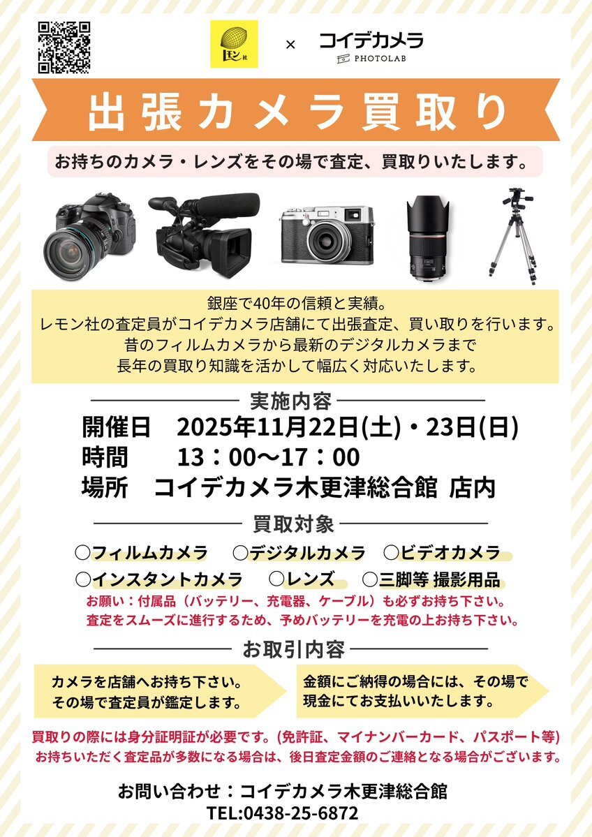 カメラ買取りイベント📢 本日2日目スタート! 17:00まで絶賛開催中です。 今年最後の買取りとなります。 ぜひご利用くださいませ~😊😊📸 #木更津 #君津 #袖ヶ浦 #イベント #買取り #中古カメラ #レモン社 pic.x.com/lsvNKH2APe