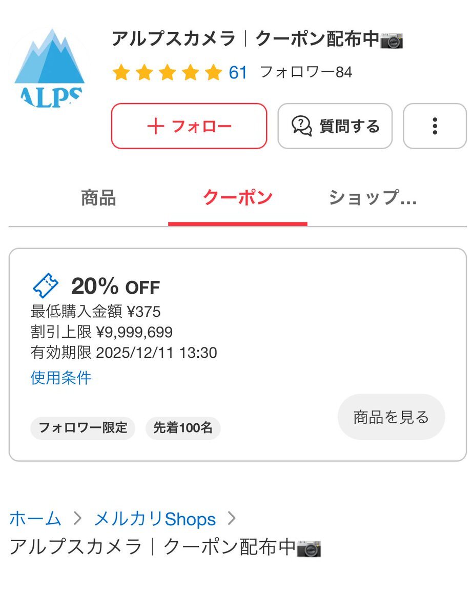 🎉【毎日更新中📷】 カメラ・レンズ・撮影機材を本日も出品中✨ 掘り出し物が見つかるかもしれません👀 🛒メルカリShopsはこちら 👉 mercari-shops.com/shops/SJ9oGBum… 💰フォロワー限定クーポン配布中! お得にゲットできるチャンスをお見逃しなく🔥 #メルカリShops #アルプスカメラ #中古カメラ pic.x.com/FknfKVtmFP
