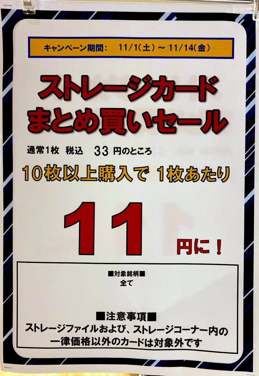 【#中古トレカ SALE情報✨】 ストレージカードまとめ買いセール 通常1枚33円のところ… 🔟枚以上購入で1枚あたり11円に‼️ 期間は〜11/14(金)まで この機会に是非ご利用下さいませ✨ #TSUTAYA #枚方ベルパルレ pic.x.com/fGGpuAyqG1