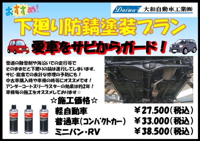 ☆おすすめオプションプラン☆雪国北海道で定番のお悩み お車のサビ問題( ·᷄ ︵·᷅ )ショボーン 長く大事にしたい愛車だから キチンとケアをオススメします! 車検整備や点検のタイミングに合わせて…… モチロン 防錆塗装のみのご用命も!☝ #旭川 # #中古車 #中古車販売店 #整備工場 pic.x.com/IDvFj2Y4y7