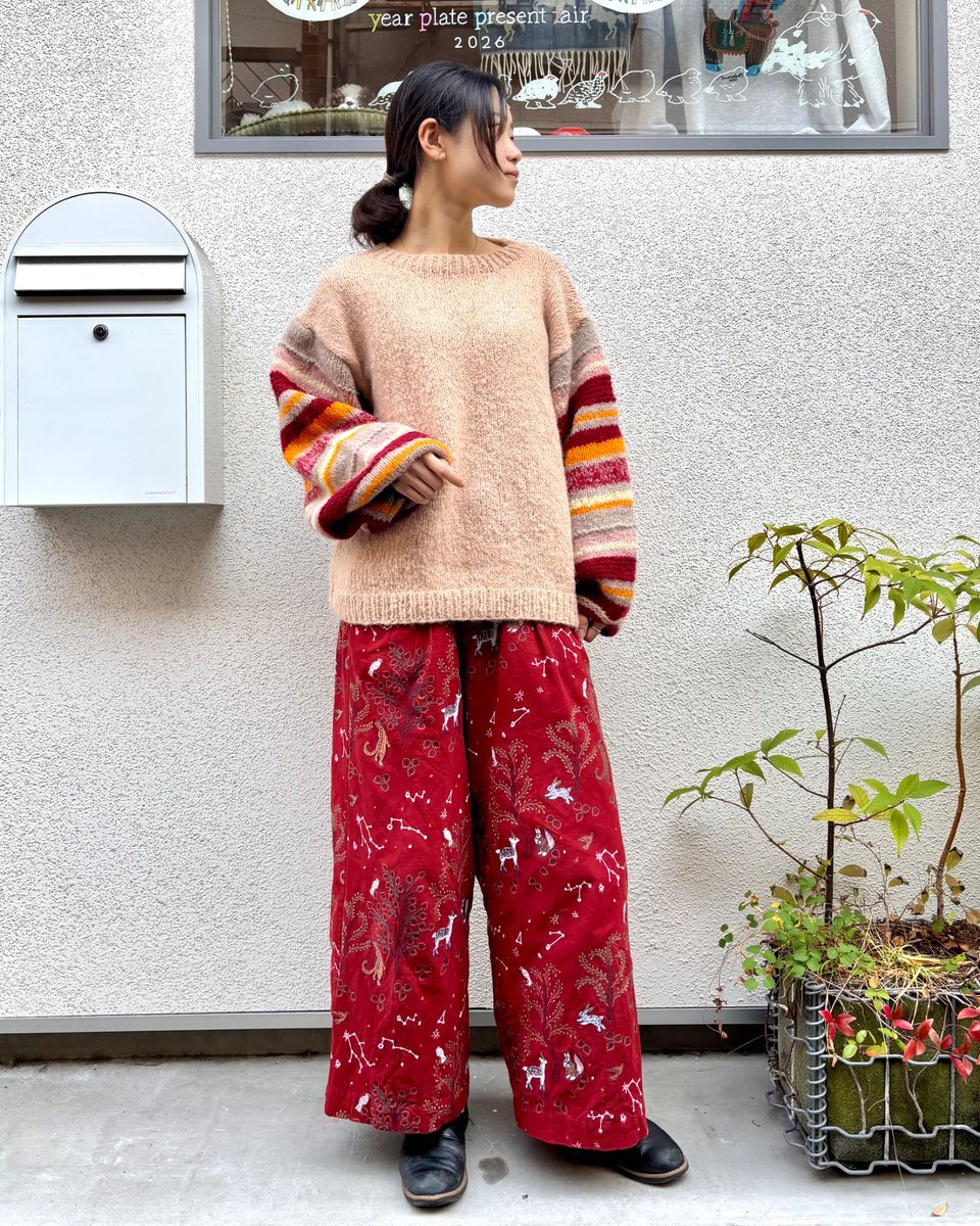 🐰イヤプレカラーコーデ 〜ピンク〜🌸 カラーコーデ第2弾は、ピンクやレッドのアイテムを使ったコーデです♪ パンツのテキスタイル「starry forest」は、 繊細な総刺繍で、冬のコーデにも華やかさをプラス! 他にもピンクやレッドのアイテム多数ご用意しております! #マーブルシュッド #中崎町 pic.x.com/t0lyV7RzbC