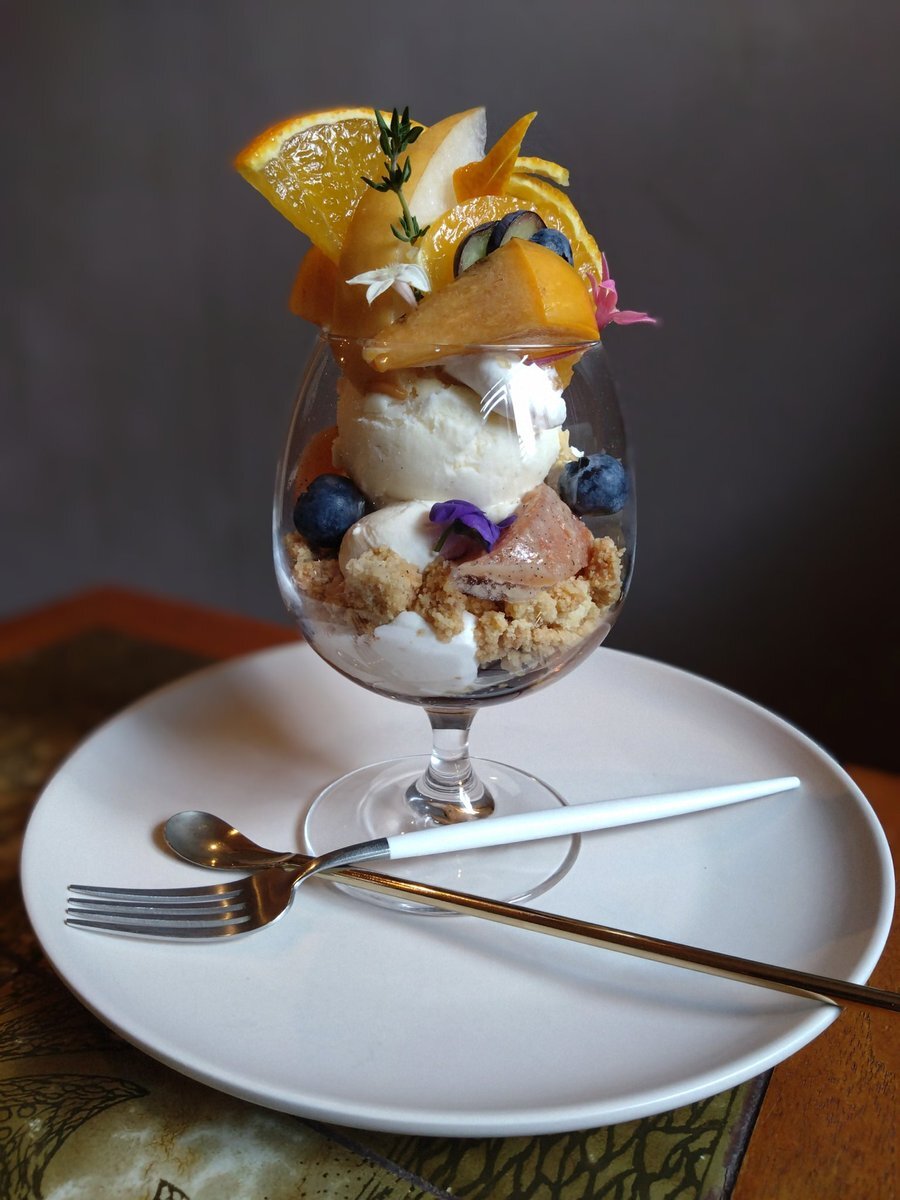 朝晩ほんと冷えてきた😭 #イマソラ 寒くてもパフェはまだ食べれる😂 で、ウルフコーヒーパティスリー🐺☕さんで、月に一度の新月🌑の日なので、限定の『新月パフェ』を食べた😋 愛媛県産の高級みかん「紅まどんな」と甘柿の王様「富有柿」のパフェ🤤 ウマかったぁ😋 #中崎町 #路地裏の名店 pic.x.com/mfblQJZA9M