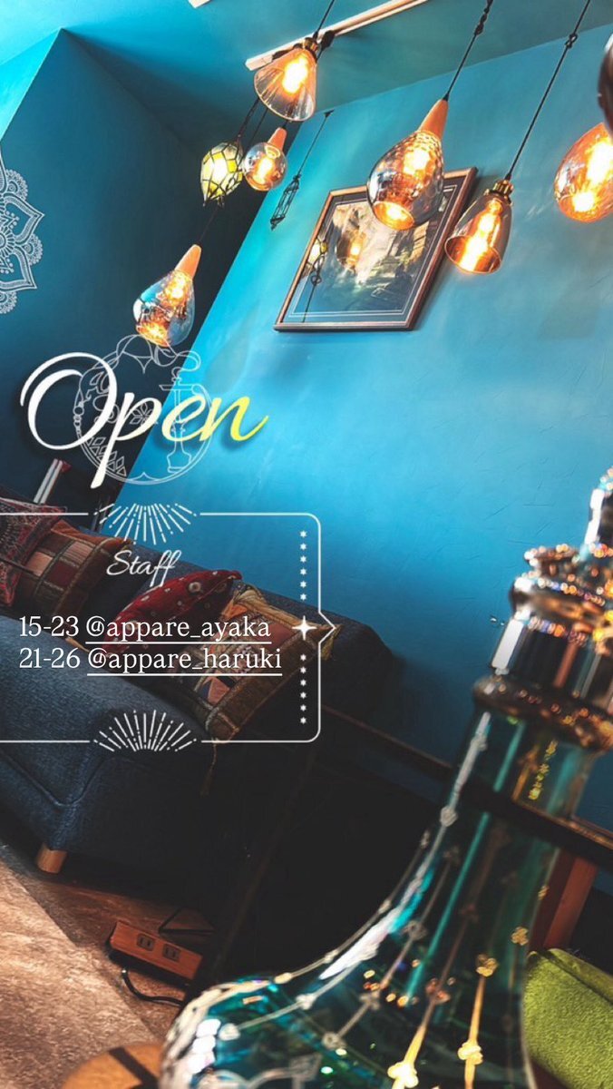 まもなく天満店オープンいたします🩵 本日もたくさんのご来店お待ちしております(ᐡ - ·̫ -ᐡ)🍀*゜ 15-23 @appare_ayaka 21-26 @appare_haruki #天満 #天満シーシャ #大阪シーシャ #梅田シーシャ #大阪デート #天満カフェ #夜カフェ #大阪カフェ #梅田カフェ #中崎町 #中崎町カフェ pic.x.com/FajZ9HlQMi