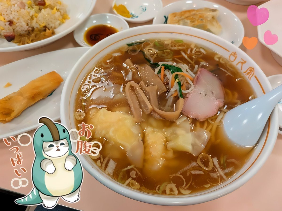 海老わんたんめん🦐 炒飯と餃子と春巻きも食べました🎶 腹ペコだったので撮影前に少し食べちゃった…w✨️( ˘ω₍˘ )⁾⁾✨️ プリプリの海老ワンタンうま〜💓 皮パリパリの春巻き、スパイシーな餡の餃子も美味しかった🥰 炒飯はスープ付きの最強タイプでした👑 #ワンタン麺 #中華料理 pic.x.com/kSuFzhr5WJ