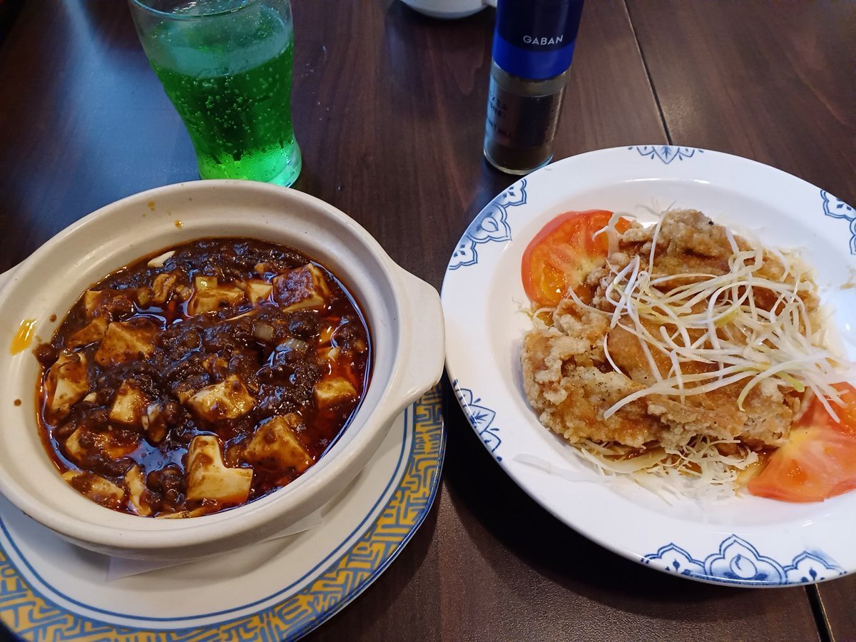 バーミヤンで油淋鶏と四川麻婆食べてきました (∩ˊ꒳ˋ∩)おいしかった.ᐟ 一緒についてきた山椒が効いてて麻婆と相性抜群だね🔥 これはリピ確定だわ😆✨ #バーミヤン #中華料理 #グルメ pic.x.com/HfAepSbsut