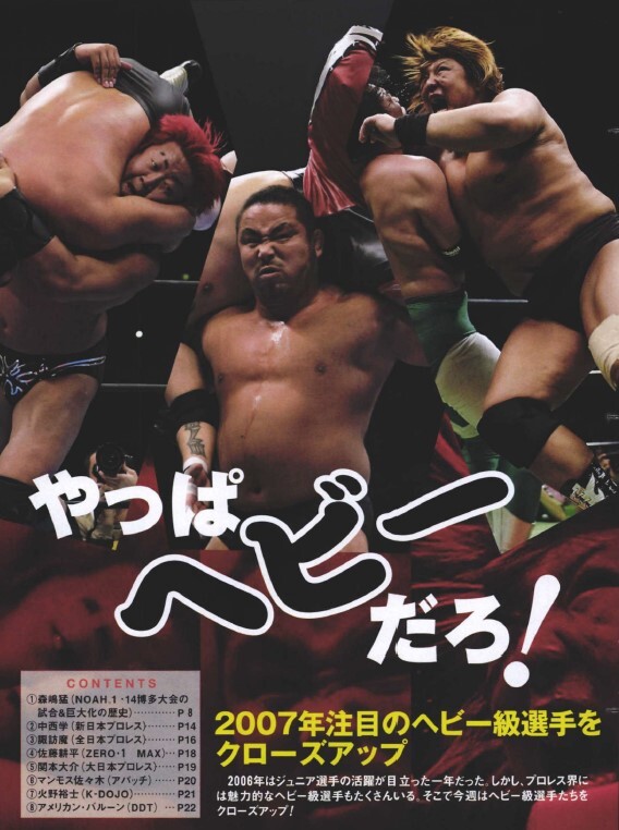 2007年注目のヘビー級選手をクローズアップ「やっぱヘビーだろ!」 #森嶋猛 #中西学 #諏訪魔 #佐藤耕平 #関本大介 #マンモス佐々木 #火野裕士 #アメリカン・バルーン 👇 \月額1098円、加入月0円/ 「週刊プロレスmobileプレミアム」2007/1/31号(No.1352) wp.bbm-mobile.com/sp2/EBook/Deta… #週プロ #ヘビー級 pic.x.com/mmOh22ng3D