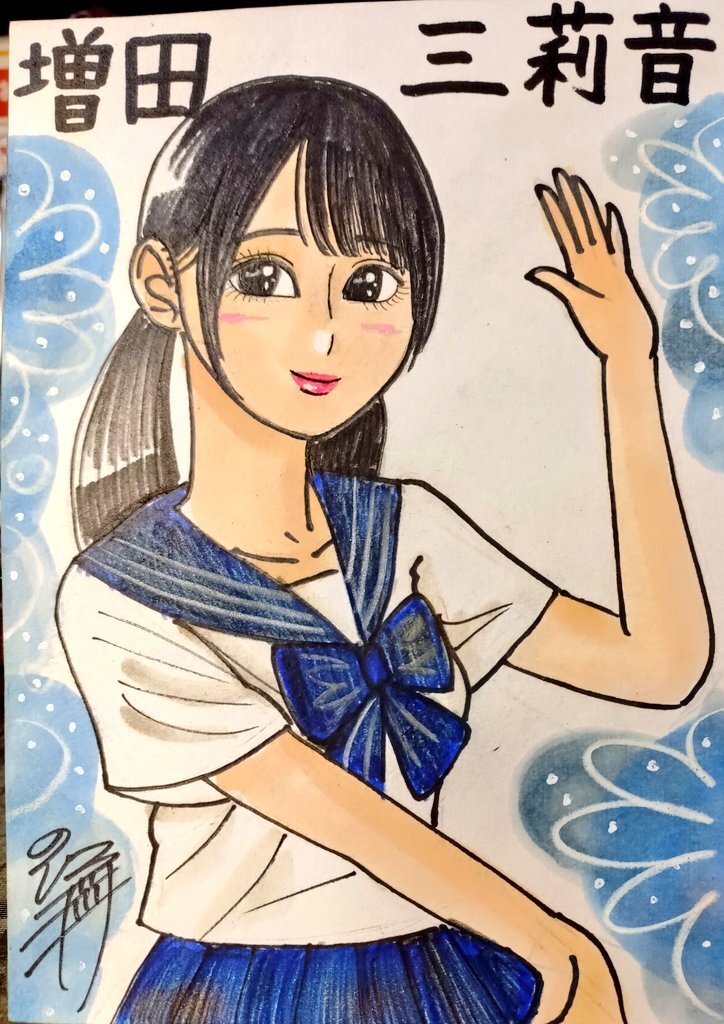 ドン! 今日描いた乃木坂ちゃんで〜す(*^^*) 💙あかりん❤️ #似顔絵 #乃木坂46 #海邉朱莉 #乃木坂46好きな人と繋がりたい #乃木坂イラスト #N46_FA pic.x.com/SzbcWLPPOP