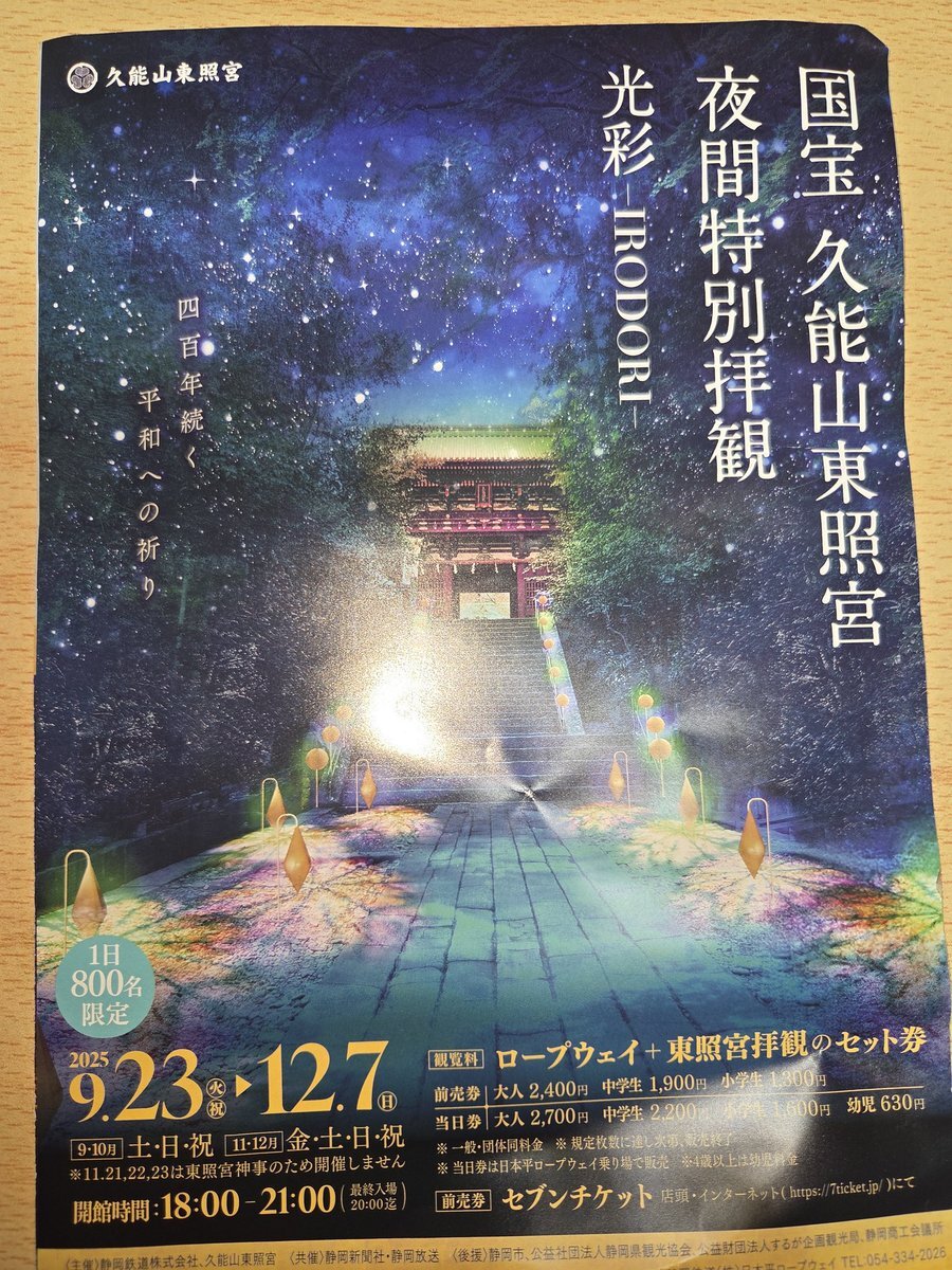 12/7までの限定ですが #久能山東照宮 にて 夜間特別拝観イベント開催中⛩️ 天下泰平の祈りが宿る地で、 日常を忘れるほど鮮やかな特別な夜を! 🚄ぜひハウマッチのある静岡に遊びに来てね🎫 静岡駅南口タクシー乗り場からすぐ左側にハウマッチ南口店が見えます👀 pic.x.com/3f9PqUcnr5