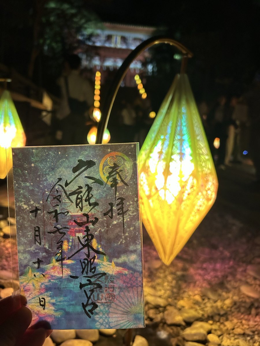 久能山東照宮 夜間特別拝観「光彩-IRODORI-」に行ってきました 幻想的でとても綺麗でした✨️ もちろん限定御朱印もいただいてきました😊 #久能山東照宮 #夜間特別拝観 #限定御朱印 pic.x.com/O3Fv9Qi7IJ x.com/kunozan_toshog…