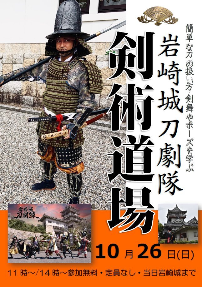 次回の剣術道場は 10月26日(日)の11:00~/14:00~(30分程度)⚔ 岩崎城刀劇隊が岩崎城で剣術の手ほどきをします⚔ 参加費無料、申込不要、どなたでもご参加いただけます! 本格的な剣術を習ってみませんか? 当日岩崎城までお越しください🏯 #岩崎城 #岩崎城刀劇隊 #剣術道場 #日進市