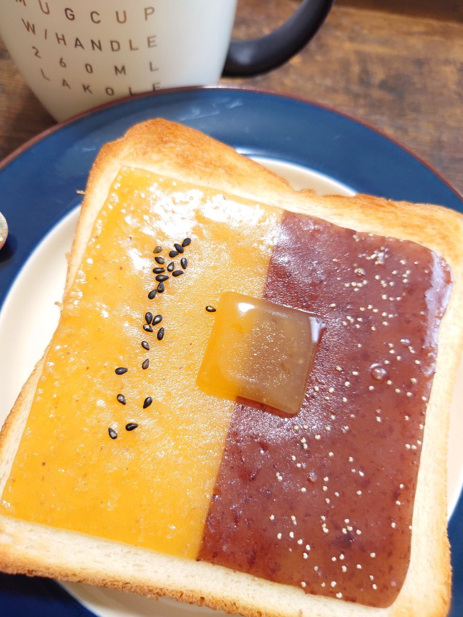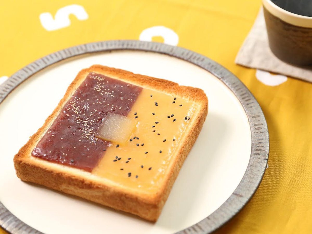 「スライスようかん焼き芋」 今年もご用意しております。 焼き芋に、生クリームと自家製キャラメルを合わせ、シナモンがほんのり香る焼き芋ようかんと丹波大納言使ったようかんを合わせた一品です。 トーストすると、トロリと溶け、スイートポテトのようなリッチな味わいに。
