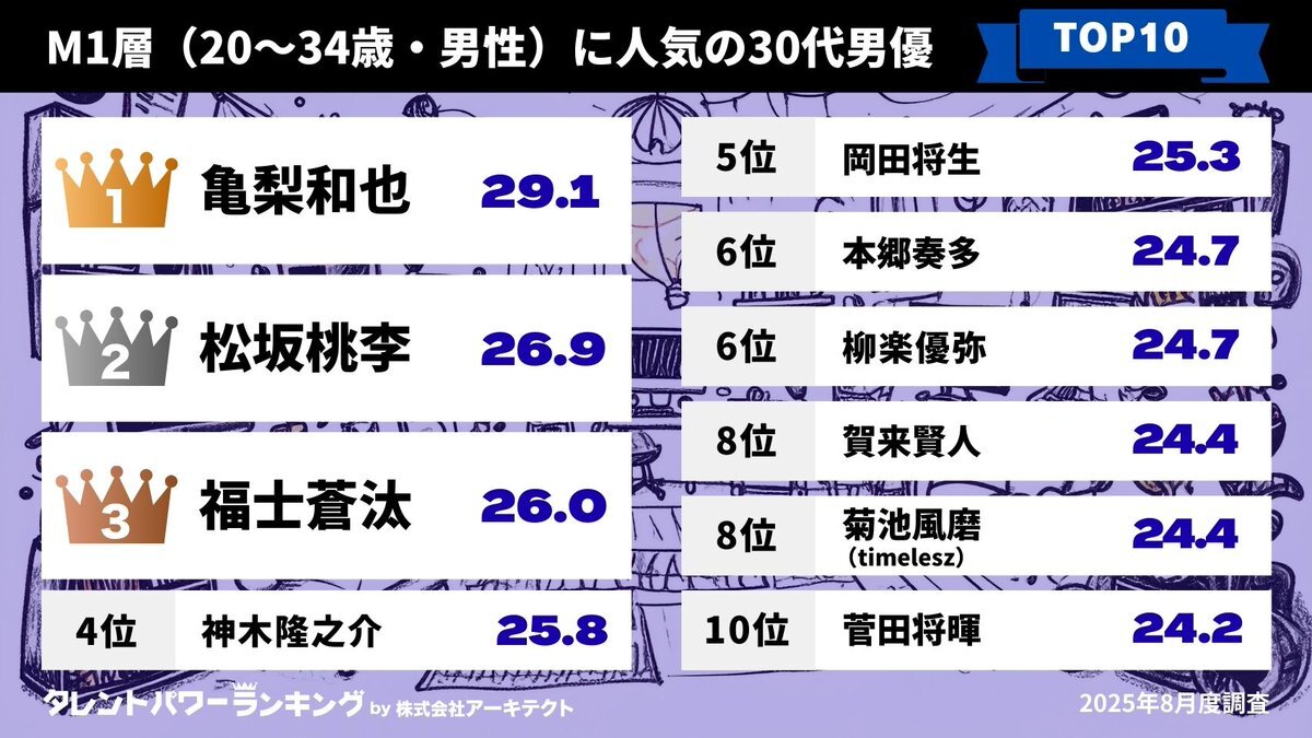 / M1層(20〜34歳男性)・F1層(20〜34歳女性)における 30代男優ベスト10比較💡 #タレントパワーランキング 👑 \ 【M1層に人気】 🩵第1位🩵 #亀梨和也 さん 【F1層に人気】 🩷第1位🩷 #山田涼介 さん #HeySɑyJUMP 他ランクインしている男優は?👀 📢詳細はこちら!!