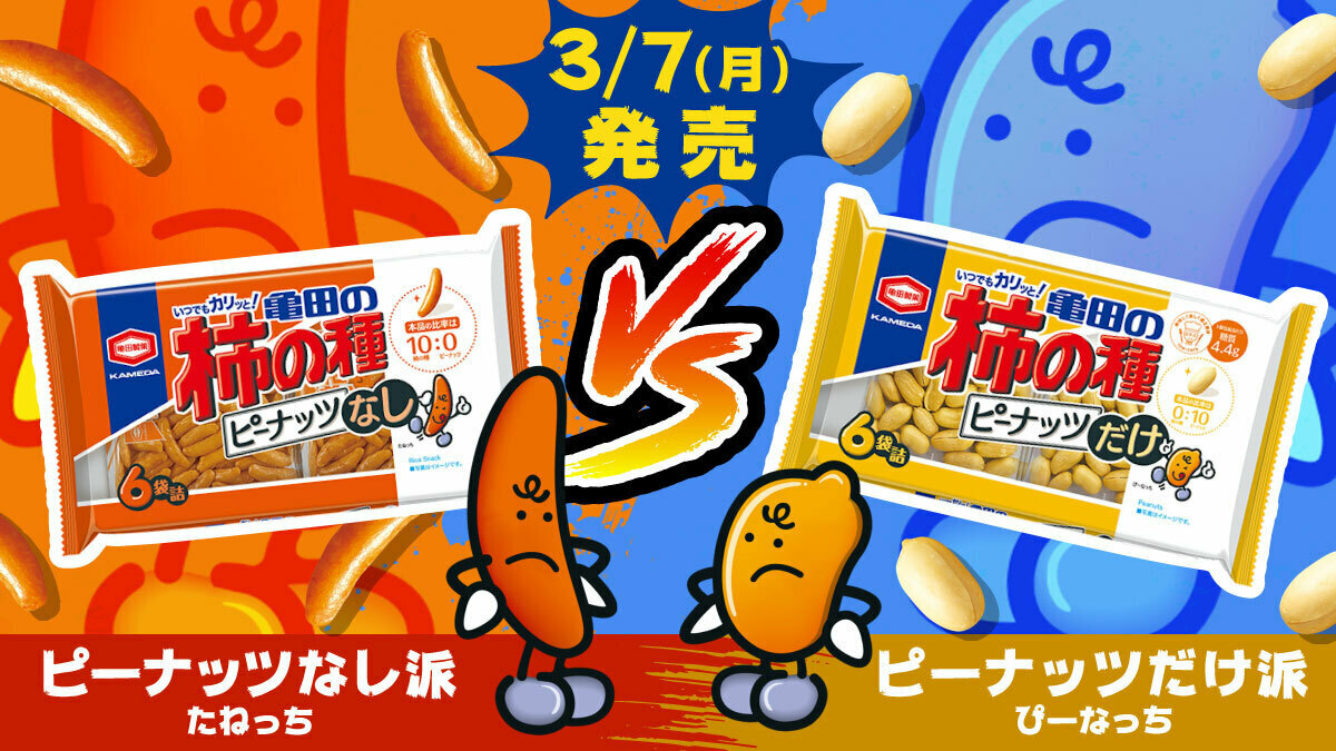 あなたはどっち派!? 3/7(月)発売✨ 🔴 亀田の柿の種ピーナッツなし 🟡 亀田の柿の種ピーナッツだけ どっちが好きかコメントをつけて投稿してね! #亀田の柿の種 pic.x.com/rMq4BxKoGY