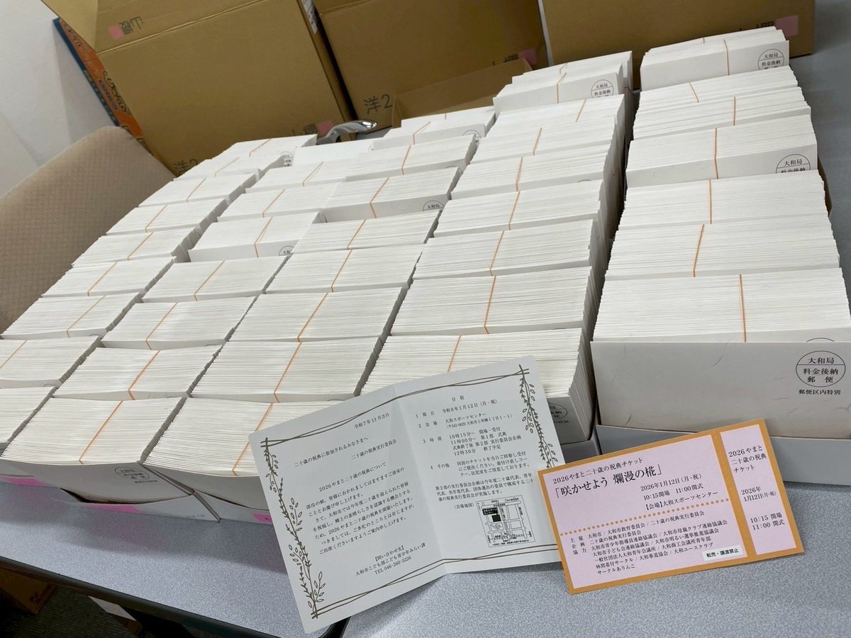 また、市内に住む対象者の皆さん宛に案内状を発送いたしました✨ 届くまでもうしばらくお待ちください🙌 フォトスポット作りも順調に進んでおります〜!!こちらも当日まで楽しみにしていてください🫰 #やまと二十歳の祝典 #二十歳の祝典 #二十歳 #成人式 #大和市 pic.x.com/PEVbZHEZhm
