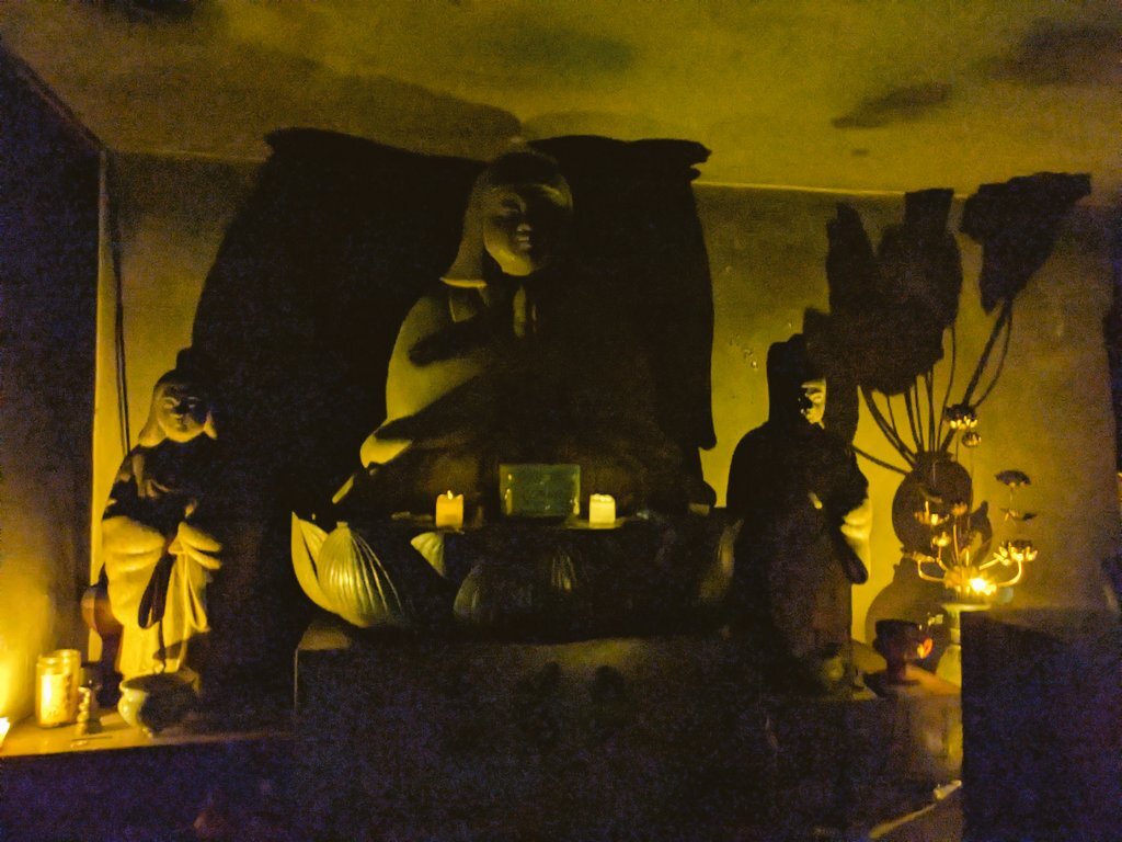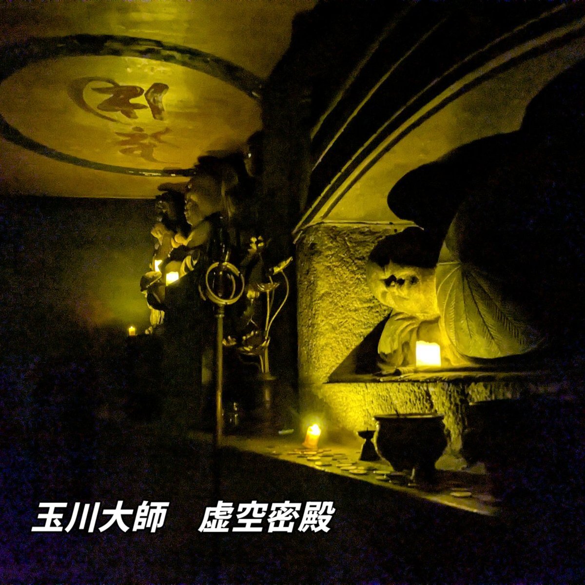 玉川大師の地下霊場、秘密マンダラ大殿堂。秘仏大日如来さまの胎内を表すのだそう。虚空密殿が開催中で、真っ暗な通路を壁に手をつき、すり足で巡った(ホントに暗かった)。期間限定で写真撮影OKとのことで撮ってみたけれど何が何やらとなってしまった。心身ともに清められたかな?#二子玉川 pic.x.com/FojsOqNfQx