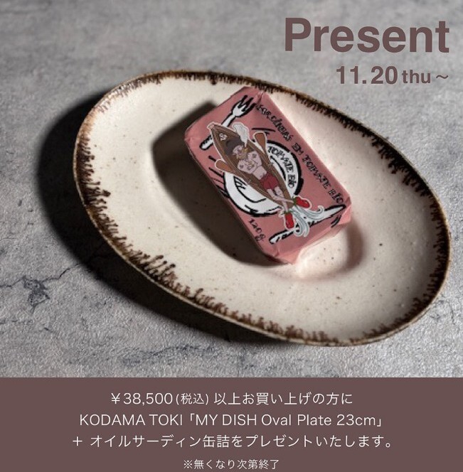 \Present/¥38,500(税込)以上お買い上げの方にKODAMA TOKI「MY DISH Oval Plate 23cm」+オイルサーディン缶詰をプレゼントいたします。 季節のアイテムが多数入荷しております。この機会にぜひご覧ください♪ #プレゼント #お皿 #缶詰 #インタッチ #kodamatoki #二子玉川 #玉川高島屋sc pic.x.com/l0ciFYUrY1