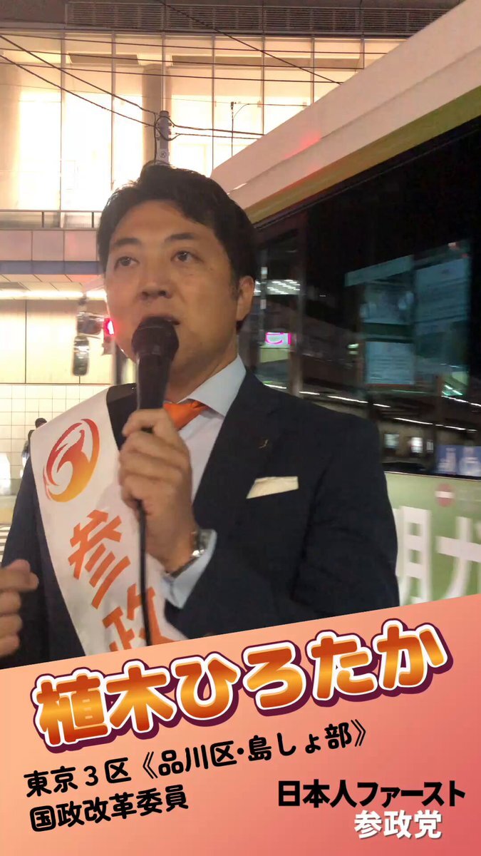 ちゃんとした保守🟠 参政党🟠 品川区(東京3区)からは 植木ひろたかサンが立候補予定✨️ 気さくなお兄さんなので 見かけたら話かけてみて下さいね。👀 #品川区 #大井町 #参政党 #東京3区 #植木ひろたか #立会川 #西大井 #中延 #戸越銀座 #五反田 #大崎 #北品川 #青物横丁 #鮫洲 x.com/hirotakaueki/s…
