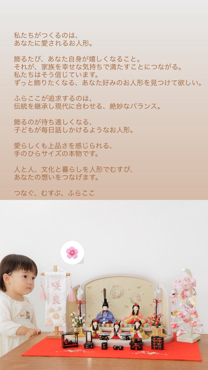 昨日は、販売開始startと同時に ほんとうに沢山のご注文をいただき 誠にありがとうございました🌸 本日は、ショールームもOpen日! ぜひご来場でのお選びもお待ちしております♪ #ふらここ #雛人形 #五月人形 pic.x.com/OEKgTIwU0i