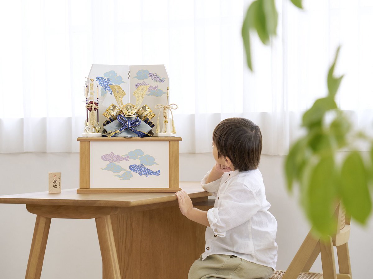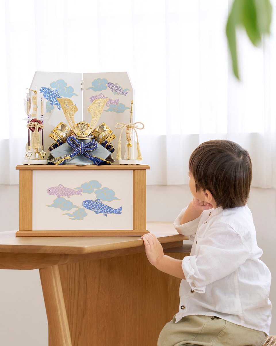 \今年注目の〈新作〉兜飾セット🎏/ 「 青藍に鯉の兜(収納タイプ)」 鯉のぼりたちをやさしい色合いと タッチで描いた、 あたたかみのあるデザイン𓍯 ナチュラルな木目調の飾り台で、 どんなお部屋にもやさしく馴染みます🍃 instagram.com/p/DROBgLXkwdH/… #ふらここ #五月人形 #鯉のぼり #初節句 pic.x.com/zX3uCSGxP4