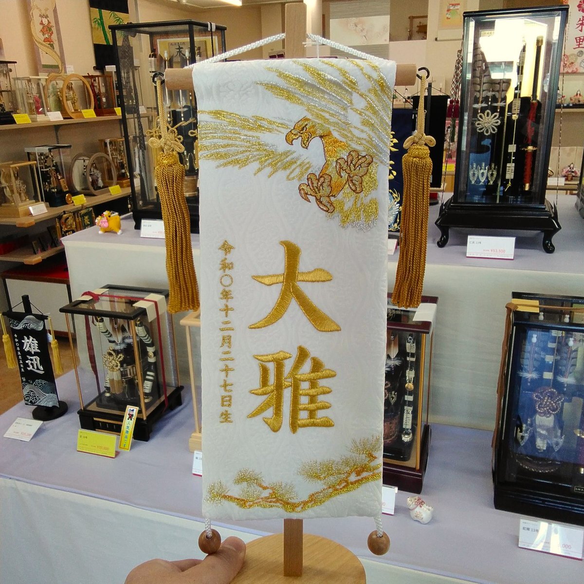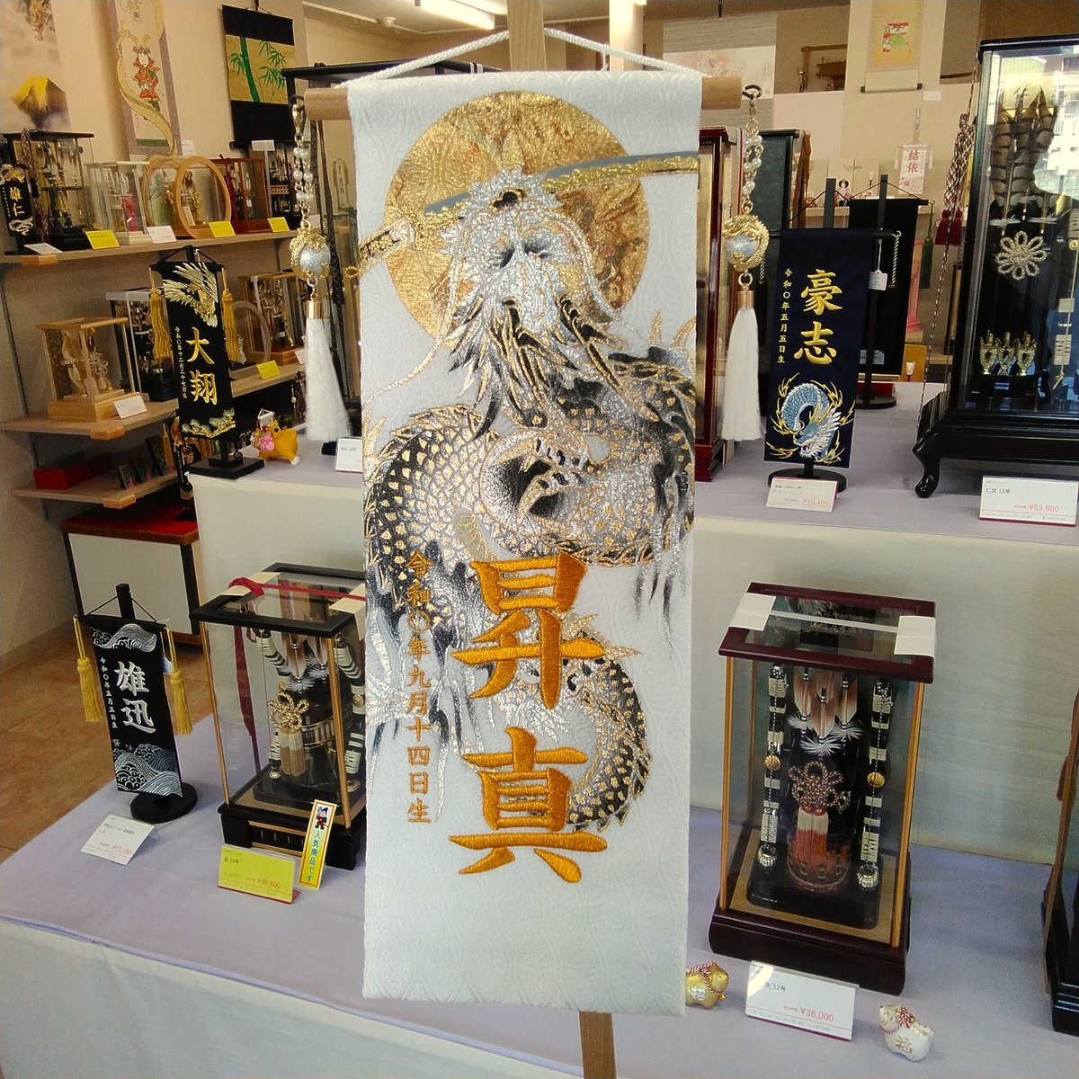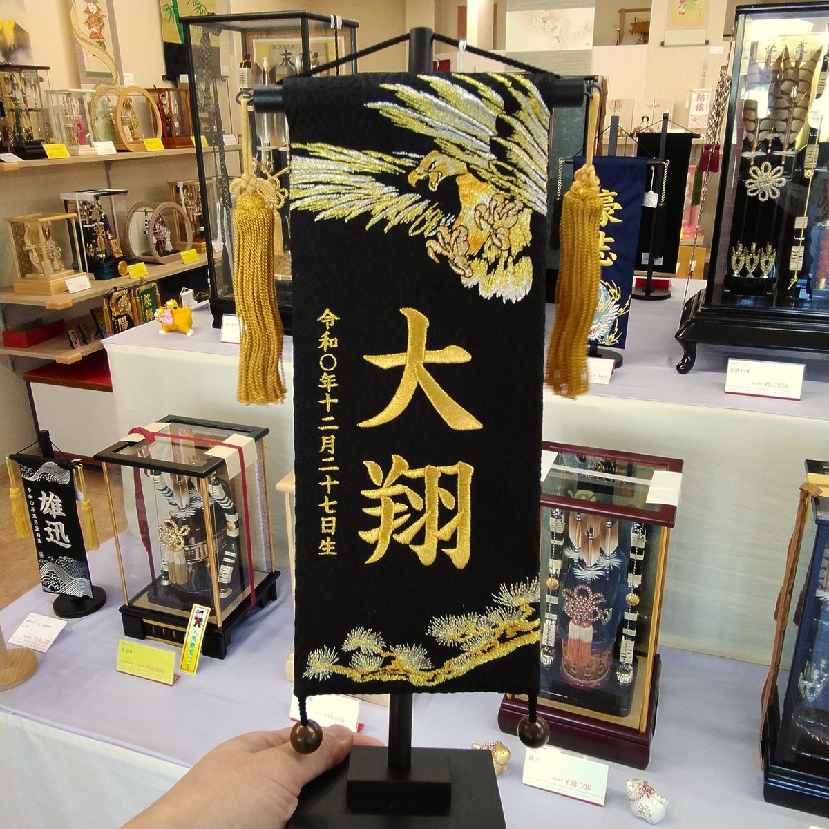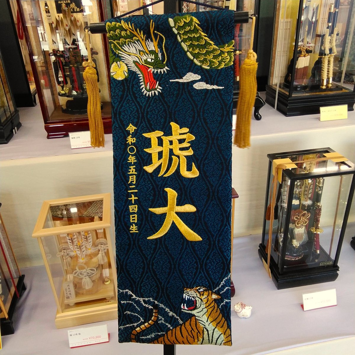 【名前旗 男の子用】 新商品が入荷しました✨ 龍・虎・鷹といった縁起物の題材とともに、お子さまのお名前と生年月日を刺繍でお仕立て🐉🐅 破魔弓や五月人形と一緒に飾って一層華やかに引き立てます。 #名前旗 #五月人形 #破魔弓 #福岡 #宗像市 #福津市 pic.x.com/Lyag0nYlqj