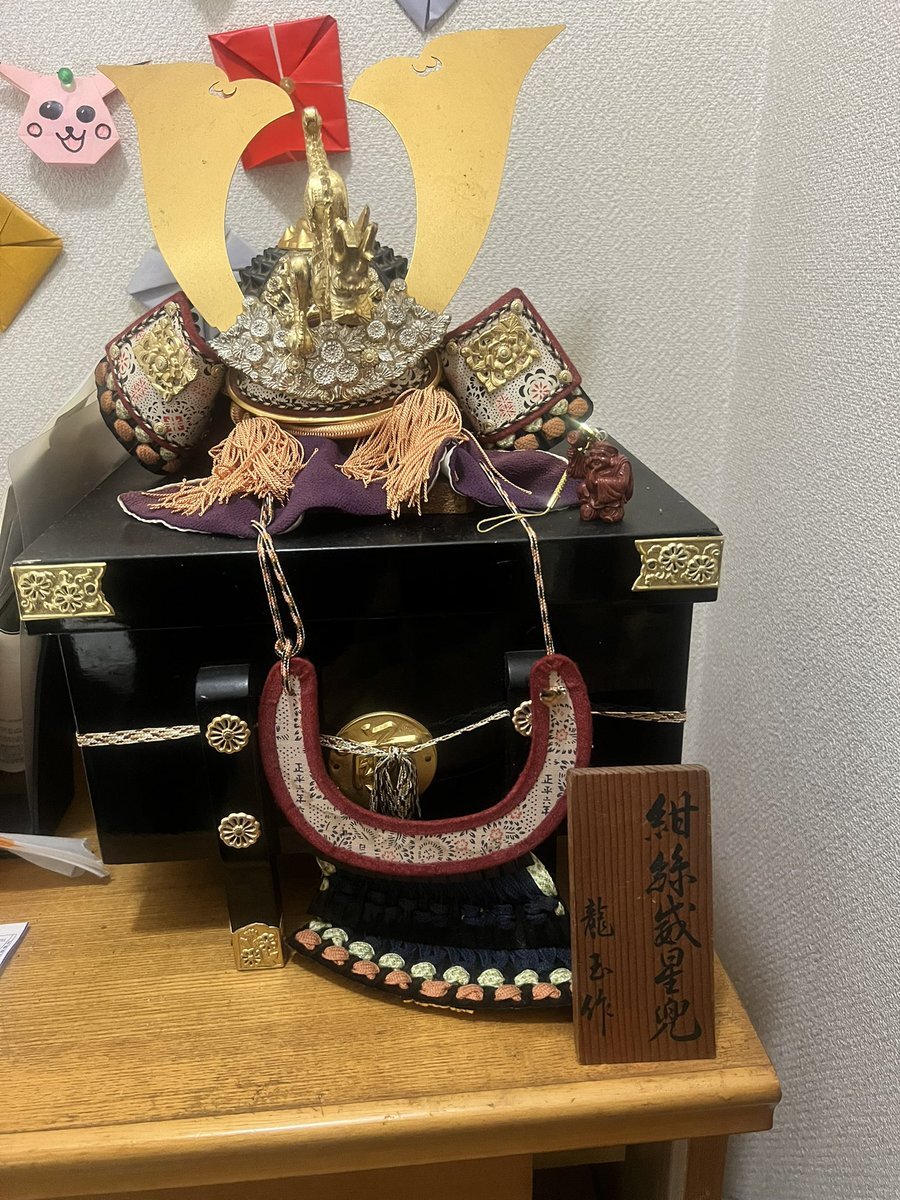 自分が端午の節句の時に祖母に買ってもらった五月人形の兜。 その時は高い物って漠然としたものでしかなかったけど、今改めて調べてみると恐ろしいほど高くて驚いている。 #五月人形 # #いつまでも飾っていたい pic.x.com/O2gQtD5LHf
